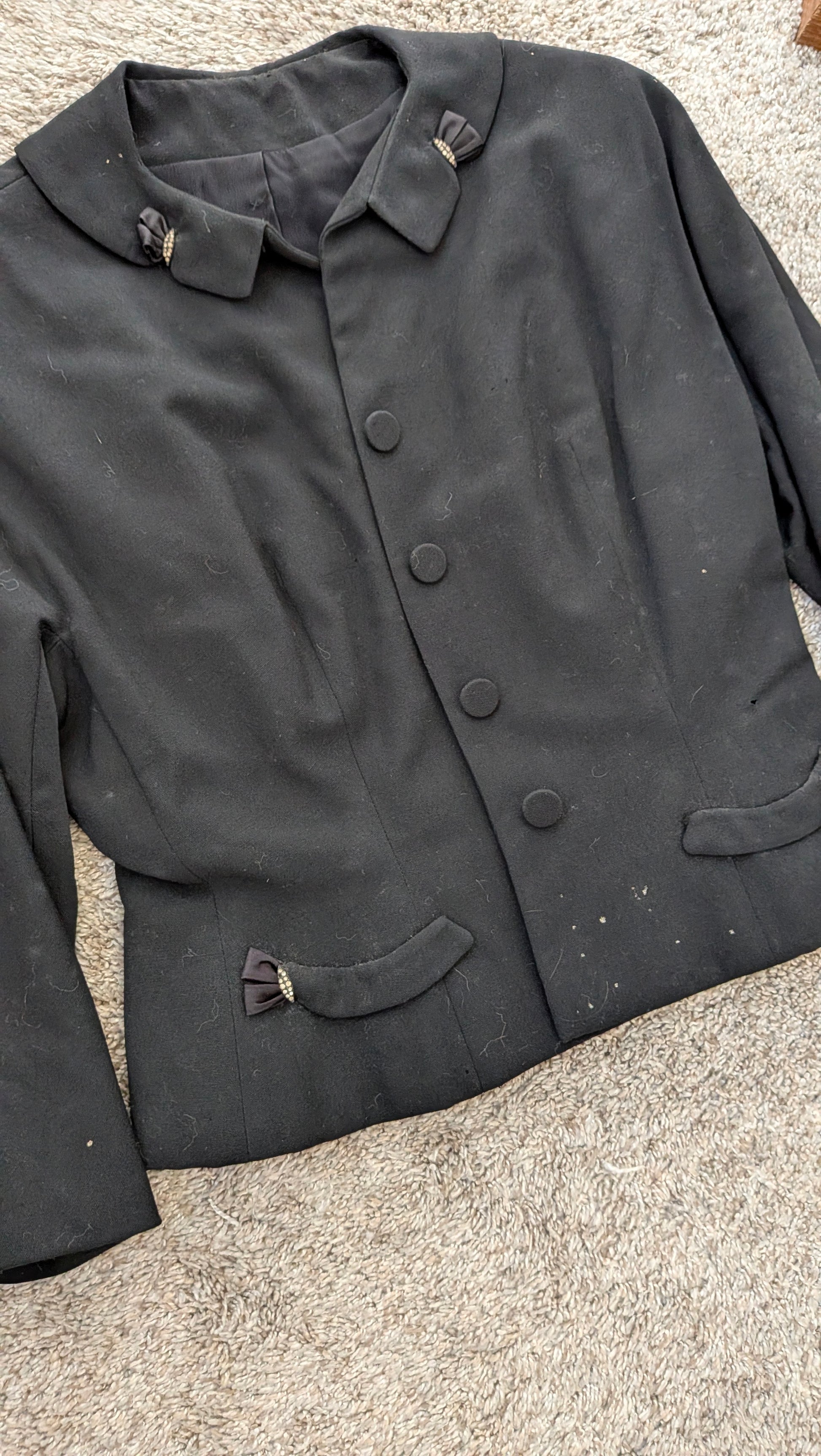 1940s union made rhinestoned black blazer - she's a wounded bird, but she's still stunning🕷️